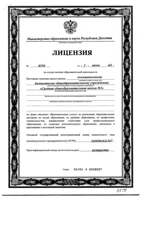| Полное наименование образовательной организации* | Муниципальное бюджетное образовательное учреждение "Средняя общеобразовательная школа№ 3" |